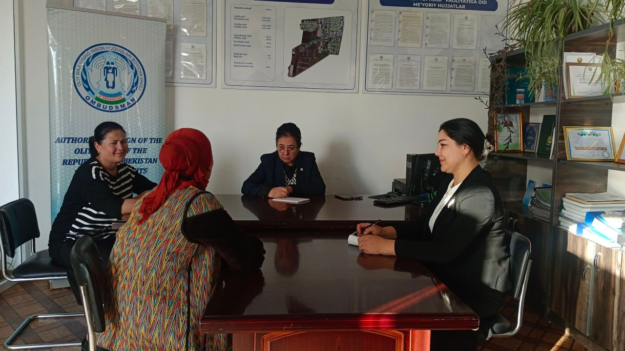 Navbatdagi sayyor qabullar Ombudsman mintaqaviy vakillari tomonidan Sirdaryo viloyati Guliston shahri “Shodlik” mahallasida, Buxoro tumani “Oybek” mahallasida, Qashqadaryo viloyatining Muborak va Koson tumanlarida hamda Qoraqalpog‘iston Respublikasining Bo‘zatov tumanida o‘tkazildi.